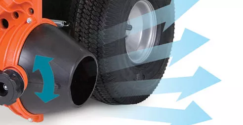 Grâce au système breveté Dual Deflector Air Flow System ™ sur le côté gauche, l’opérateur peut modifier l’angle du flux d'air pour un nettoyage plus profond et plus efficace des feuilles et des déchets, avec une vitesse de l’air allant jusqu’à 266 km/h. Vous pouvez aussi vous déplacer facilement sur les bordures ou les terrains accidentés grâce à l'essieu avant monté en torsion. Les bosses sont adoucies et la conduite plus agréable.