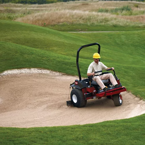 Les golfs nécessitent un entretien régulier et spécifique pour chaque zone du terrain. En effet, chaque zone d'intervention nécessite une machine spécifique. Toro, spécialiste de l'équipement pour golfs, propose des tondeuses adaptées à chaque aire de jeu afin que le gazon soit traité de la meilleure manière possible, ainsi que des râteaux pour bunkers.