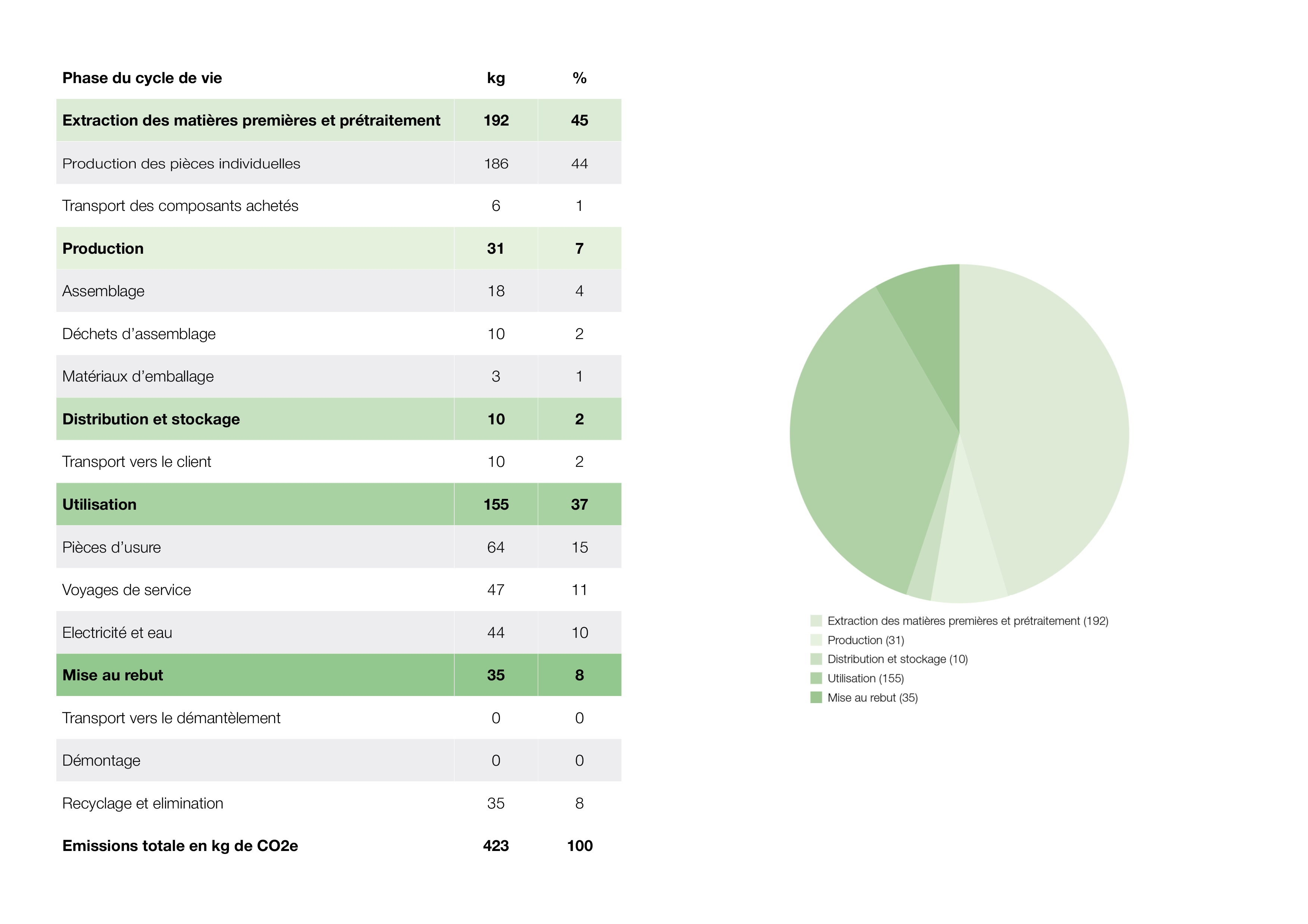 - Durable grâce à la longue durée de vie de la machine, à l'utilisation de 50 % de matériaux recyclés post-consommation dans les pièces moulées par injection et à un fonctionnement particulièrement silencieux (<60 dB)